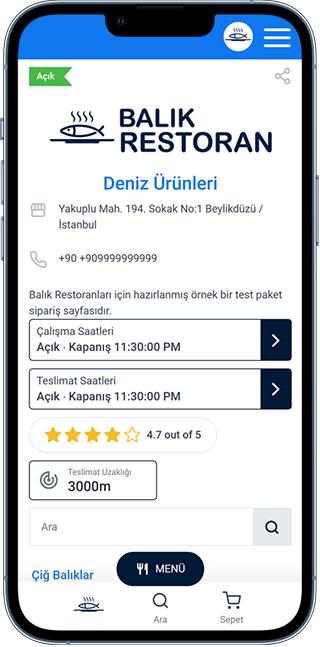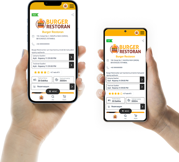 Web & Mobil online sipariş sayfanızı anında görüntüleyin, satışa açın. Komisyonsuz, aracısız, kolay ve hızlı satışa başlayın.