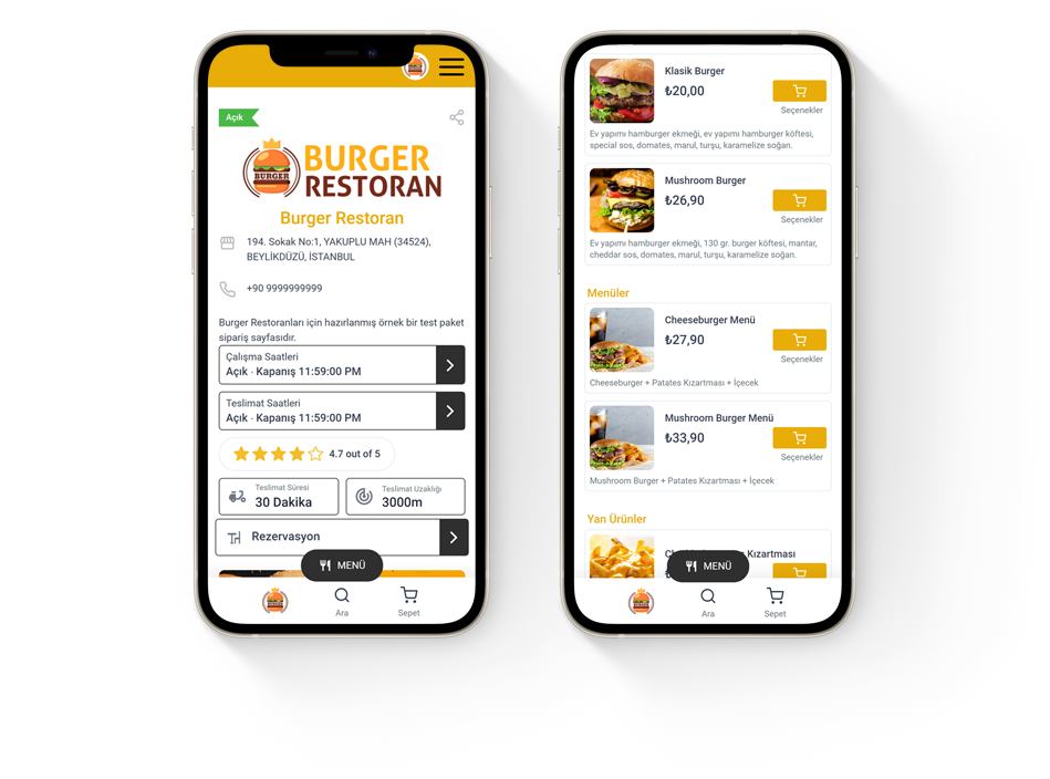 Web ve Mobil çevrimiçi sipariş sayfasına anında ulaşın. Komisyonsuz, aracılı, kolay ve hızlı çevrimiçi siparişler alın
